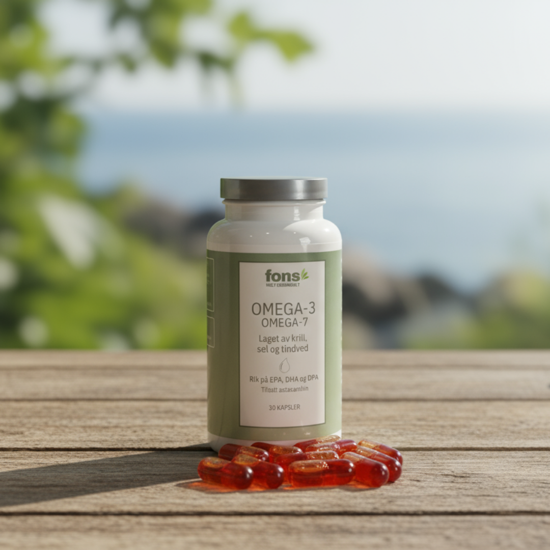 FONS omega-3 inneholder en unik kombinasjon av krillolje, selolje, tindved og astaxanthin. Produktet gir kroppen lett opptakelige fettsyrer og kraftfulle antioksidanter og er utviklet for å støtte hjertet, hjernen, huden, cellene og kroppens naturlige balanse. Dette er et helhetlig tilskudd med høy biotilgjengelighet - og bred virkning.